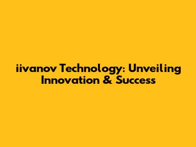 Iivanov Technology: Unveiling Innovation & Success