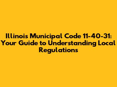 Hey there, folks! Ever stumbled upon the Illinois Municipal Code 11-40-31 and thought, "Woah, what's all this about?" Well, you're not alone. This code section might seem a bit daunting at first glance, but fear not! We're going to break it down, making it super easy to understand. Think of it as your friendly guide to navigating the often complex world of local regulations. This specific code deals with a variety of topics, but understanding its core components can empower you with knowledge. We'll delve into the specifics, examining its implications and how it impacts you, whether you're a homeowner, business owner, or simply a curious resident. Let's get started and unravel this important piece of local legislation! The goal is to provide a clear, concise, and accessible overview, ensuring that everyone can grasp the essentials. So, buckle up, and let's decode the Illinois Municipal Code 11-40-31 together!