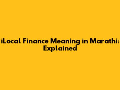 ILocal Finance Meaning In Marathi: Explained