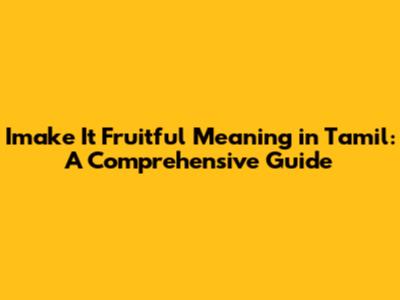 Imake It Fruitful Meaning In Tamil: A Comprehensive Guide