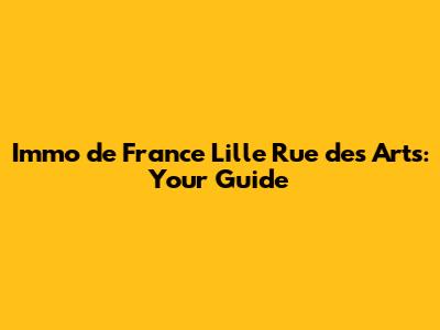 Immo De France Lille Rue Des Arts: Your Guide