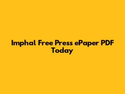 Imphal Free Press EPaper PDF: Read Today's News Online