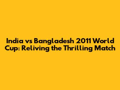 Hey sports fanatics! Let's rewind the clock and dive into the India vs Bangladesh 2011 World Cup clash. This match was more than just a game; it was a rollercoaster of emotions, showcasing incredible talent and unforgettable moments. This article will be a deep dive into the highlights. We'll explore the key moments that made this match so special, from the electrifying performances of key players to the nail-biting finishes that had everyone on the edge of their seats. So, grab your snacks, get comfortable, and let's relive the magic of the India vs Bangladesh 2011 World Cup! This match is a treasure trove of cricketing brilliance, strategic masterclasses, and sheer sporting drama. From explosive batting displays to skillful bowling spells, every aspect of the game kept fans hooked. So, what made this match such a memorable one? Why does it still get talked about even today? Let's unpack the key moments that defined this epic encounter. It's time to journey back to that unforgettable day and celebrate the brilliance that unfolded on the cricket field. The 2011 World Cup was held in India, Bangladesh, and Sri Lanka, which made this match even more special. The anticipation and pressure were immense, but the players rose to the occasion, delivering a performance that will be etched in the memories of cricket enthusiasts for years to come. Buckle up, guys, it's going to be a fun ride through one of the most exciting matches in recent cricket history!