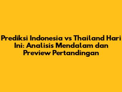 Indonesia akan berhadapan dengan Thailand dalam pertandingan yang sangat dinantikan. Para penggemar sepak bola di seluruh negeri sangat antusias untuk menyaksikan pertandingan sengit ini. Dalam artikel ini, kita akan membahas prediksi pertandingan, analisis taktik, dan berita terbaru seputar kedua tim. Mari kita selami lebih dalam untuk memahami apa yang bisa kita harapkan dari laga Indonesia vs Thailand hari ini.