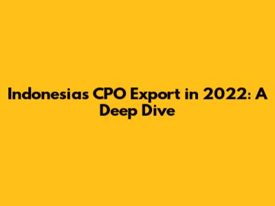 Hey guys! Let's dive into something super interesting – Indonesia's CPO (Crude Palm Oil) export figures for the year 2022. This is a big deal because Indonesia is a major player in the global palm oil market, and understanding its export numbers gives us a peek into the world of edible oils, global trade, and even environmental impacts. Palm oil is a versatile ingredient found in tons of products, from food items like instant noodles and chocolate to cosmetics and biofuels. So, when we talk about CPO exports, we're talking about a significant piece of the global economy. Let's unpack the numbers, the factors that influenced them, and what it all means for the future.