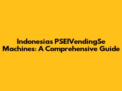 Indonesia's PSEIVendingSe Machines: A Comprehensive Guide