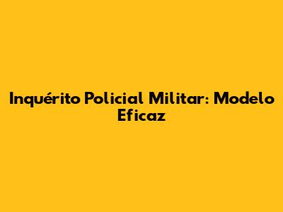 Inquérito Policial Militar: Modelo Eficaz