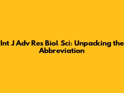 Decoding 'Int J Adv Res Biol Sci'
