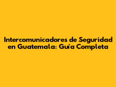 Intercomunicadores De Seguridad En Guatemala: Guía Completa