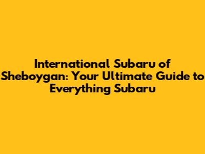 International Subaru Of Sheboygan: Your Ultimate Guide