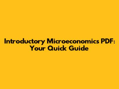 Introductory Microeconomics PDF: Your Quick Guide