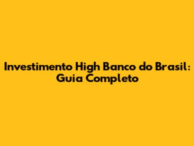 Investimento High No Banco Do Brasil: Guia Completo