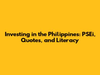 Investing In The Philippines: PSEi, Quotes, And Literacy