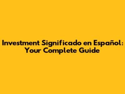 Investment Significado En Español: Your Complete Guide