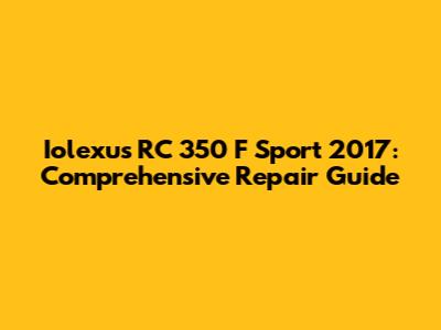 Iolexus RC 350 F Sport 2017: Comprehensive Repair Guide