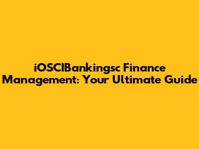 IOSCIBankingsc Finance Management: Your Ultimate Guide