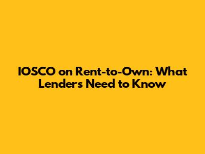 IOSCO On Rent-to-Own: What Lenders Need To Know