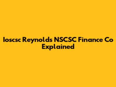 Why Ioscsc Reynolds NSCSC Finance Co Matters