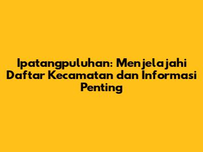 Ipatangpuluhan: Daftar Lengkap Kecamatan Dan Informasinya