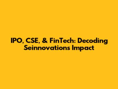 IPO, CSE, & FinTech: Decoding Seinnovations' Impact