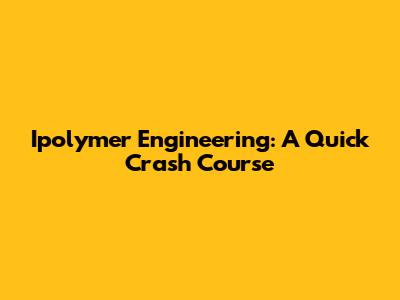Ipolymer Engineering: A Quick Crash Course