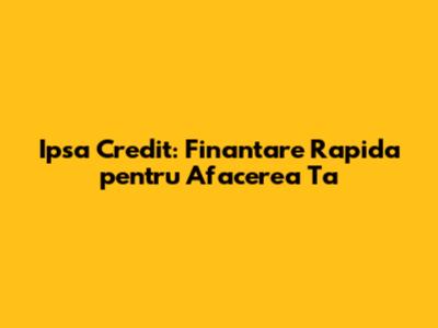 Ipsa Credit: Finantare Rapida Pentru Afacerea Ta