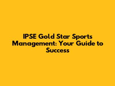IPSE Gold Star Sports Management: Your Guide To Success