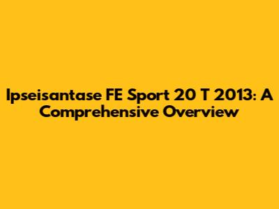 Ipseisantase FE Sport 20 T 2013: Review & Specs
