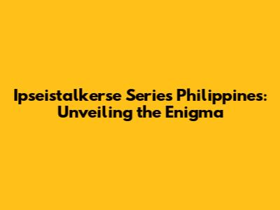 Ipseistalkerse Series Philippines: Unveiling The Enigma