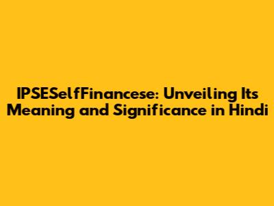 IPSESelfFinancese: Meaning, Benefits, And How To Navigate In Hindi