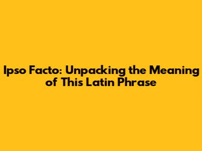 Ipso Facto: Unpacking The Meaning Of This Latin Phrase