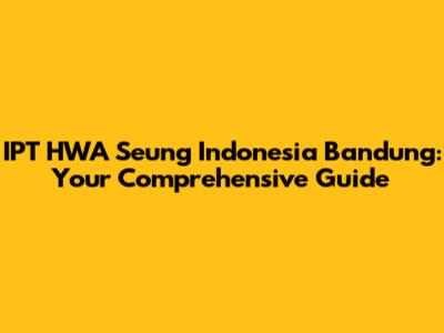 Hey guys! Are you looking for information about IPT HWA Seung Indonesia in Bandung? Well, you've come to the right place. This article will dive deep into everything you need to know, from its background and services to how it impacts the local community. Let's get started!