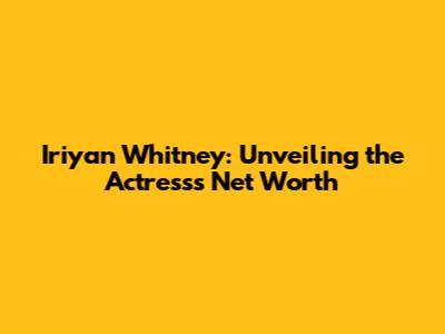 Iriyan Whitney: Unveiling The Actress's Net Worth