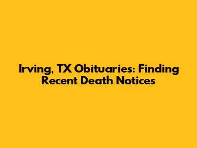 Irving, TX Obituaries: Find Recent Death Notices