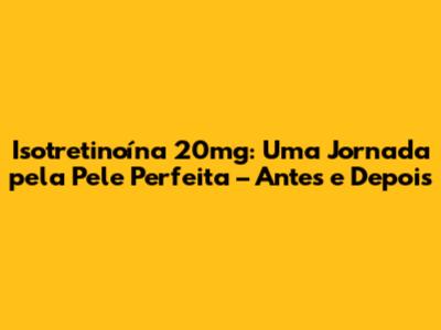 Isotretinoína 20mg Antes e Depois: Resultados Impressionantes