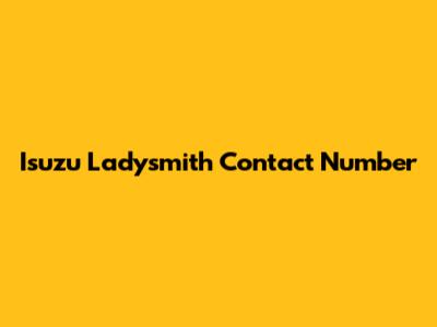 Isuzu Ladysmith: Find Contact Details & More