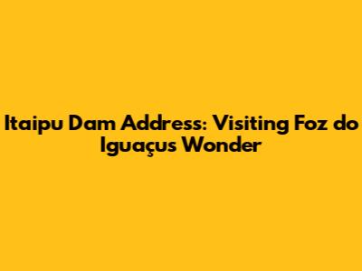 Planning a visit to the magnificent Itaipu Dam in Foz do Iguaçu, Brazil? Knowing the exact address and how to get there is crucial for a smooth and memorable experience. In this comprehensive guide, we'll provide you with all the necessary details, ensuring you don't miss out on exploring this engineering marvel. So, let's dive in, guys, and get you ready for your Itaipu adventure!