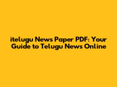 Itelugu News Paper PDF: Your Guide To Telugu News Online