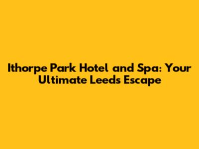 Ithorpe Park Hotel And Spa: Your Ultimate Leeds Escape