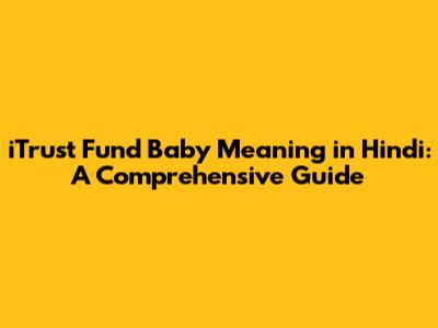 ITrust Fund Baby Meaning In Hindi: A Comprehensive Guide