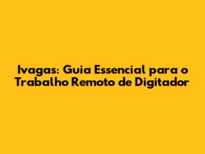 Ivagas: Seu Guia Completo Para Trabalho Remoto Como Digitador