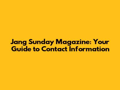 Jang Sunday Magazine: Your Guide To Contact Information