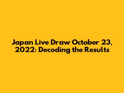 Japan Live Draw October 23, 2022: Unveiling Results!