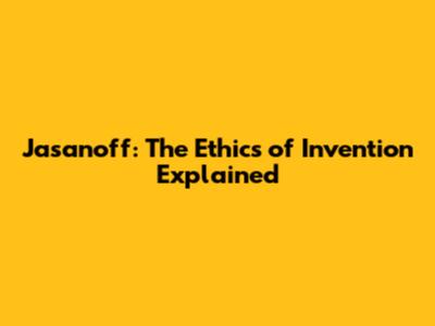 Jasanoff: The Ethics Of Invention Explained