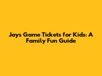 Jays Game Tickets For Kids: A Family Fun Guide