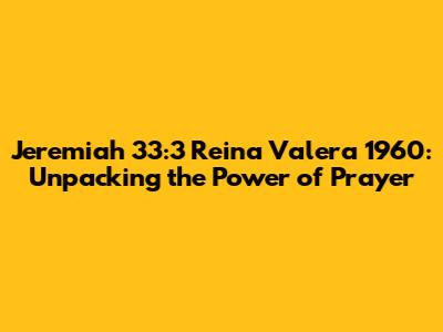 Hey everyone! Today, we're diving deep into one of the most powerful verses in the Bible: Jeremiah 33:3 from the Reina Valera 1960 translation. This verse is a beacon of hope and a call to action, urging us to connect with God in a profound way. Let's break it down, piece by piece, and see how we can apply its wisdom to our daily lives. So, grab your Bibles, and let's get started!