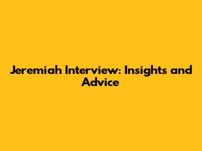 Jeremiah Interview: Insights And Advice
