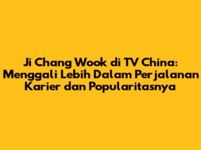 Ji Chang Wook Di TV China: Sorotan Karier Dan Popularitasnya
