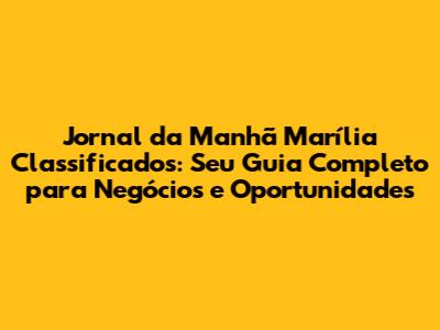 Jornal Da Manhã Marília Classificados: Guia Completo