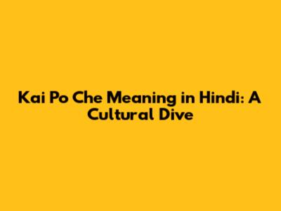 Kai Po Che Meaning In Hindi: A Cultural Dive